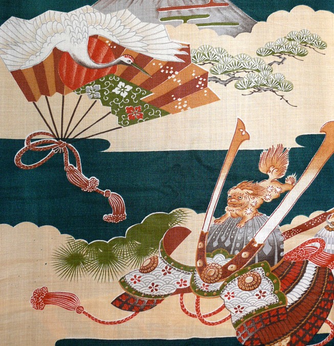 виде белокрылого журавля, горы Фуджи и сосновых веток.