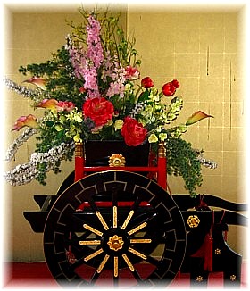 Изящное шелковое кимоно "Утренний сад". Букет из пышных