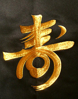 Мужское кимоно с вышивкой на спине и передних полочках иероглифа