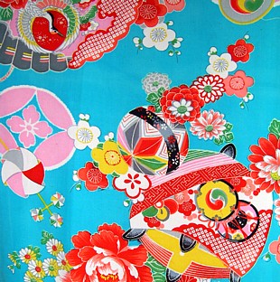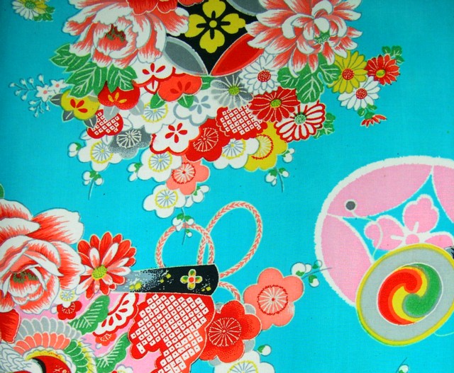 бирюзово -голубого шелка с рисунком в виде раскрытых расписных
